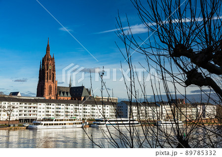 ドイツ フランクフルト・アム・マインのマイン川と遠くに見える聖バルトロメウス大聖堂