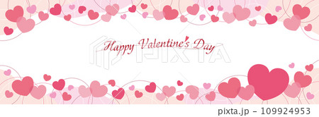 かわいいハートとラインサークルのバレンタインフレームバナー/横長・ピンク
