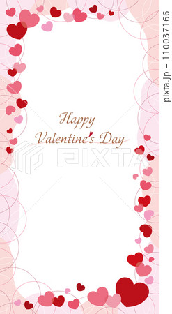 かわいいハートとラインサークルのバレンタインフレームバナー/縦長・赤・ピンク