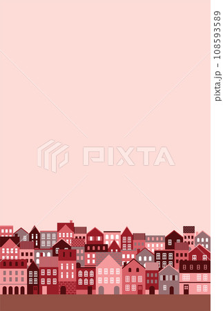 バレンタインのかわいいフレーム、街並みとプレゼントとラブレター02
