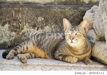 バンコク観光地、寺院「ワット・ポー」内にいる猫(Cat at Wat Pho in Bangkok)