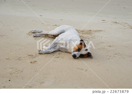 Dog lying on the Beach(ビーチで寝そべる犬)