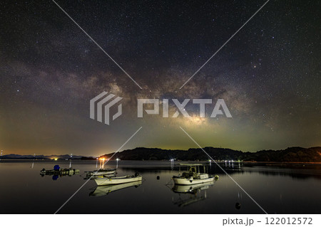 牡蠣棚並ぶ瀬戸内の空に流れる天の川
