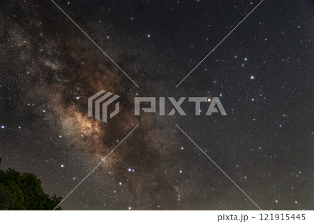 瀬戸内の春の星景 多島美の空のさそり座と天の川