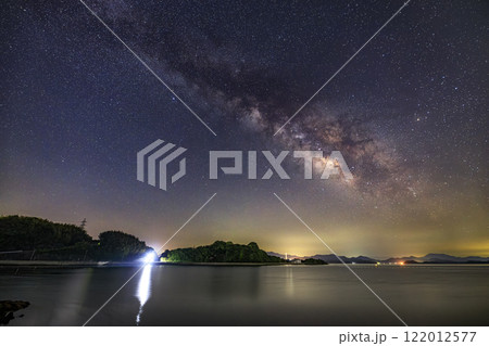 牡蠣棚並ぶ瀬戸内の空に流れる天の川