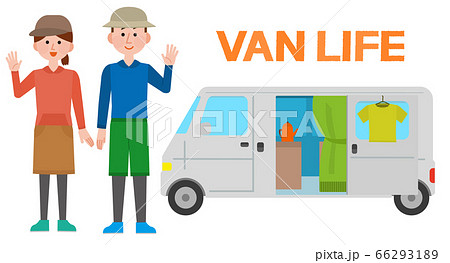 車中泊 バンライフ 男女 イラスト