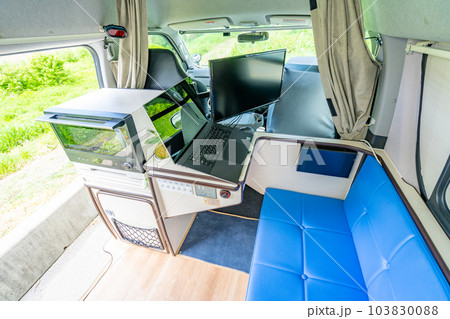 キャンピングカー インテリア バンライフ パソコン モバイルオフィス