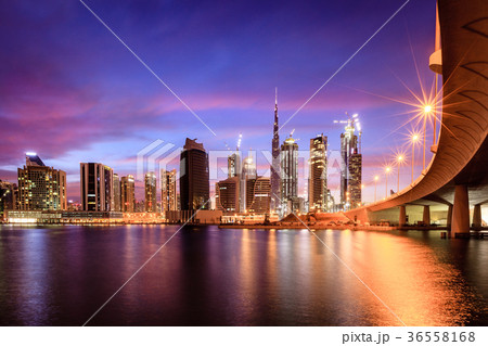 Glowing center of Dubai with beautiful high-rise buildings. Beautiful view of the glowing center of Dubai near, where modern architecture, luxury, and vibrant nightlife converge.