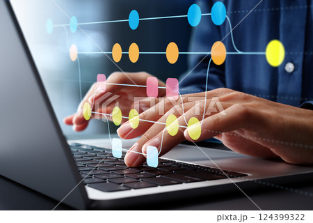 デジタルファイルとフォルダーのアイコン。ドキュメントマネジメントとアーカイブシステム。ホログラフのよ