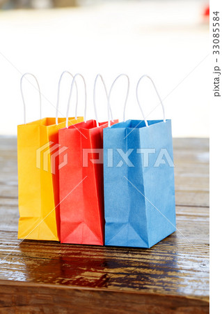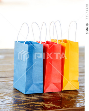 テーブルの上の3色の紙袋