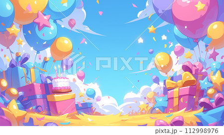 バースデイケーキの誕生日パーティー向け背景イラスト