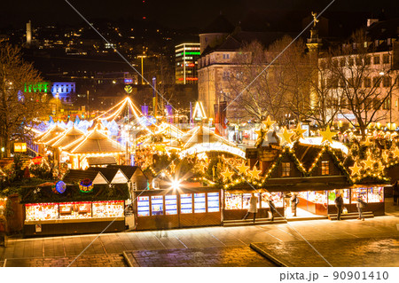ドイツ シュトゥットガルトのシュロスプラッツでのクリスマスマーケット