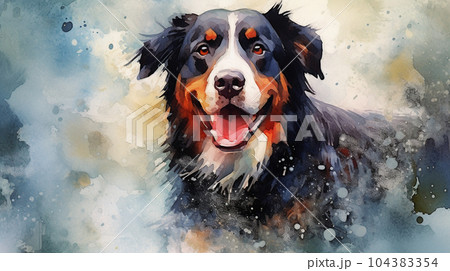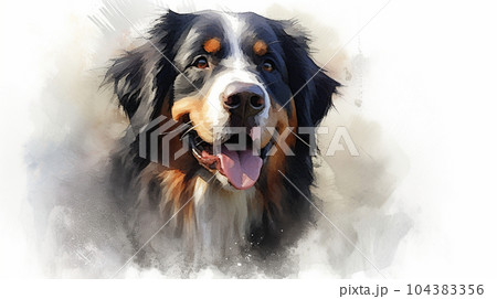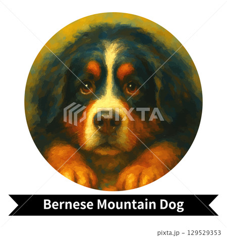 バーニーズ・マウンテン・ドッグの犬ポートレート - かわいいペットの油絵風画像