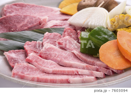 霜降り肉と焼き野菜の盛り合わせ横位置-1