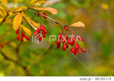 Barberry, Berberis vulgaris, branch with natural fresh ripe red berries background. Red ripe berries