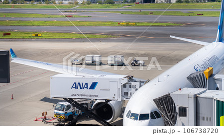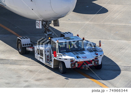 羽田空港の風景 トーイングカーと飛行機 東京都大田区