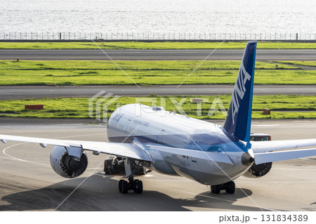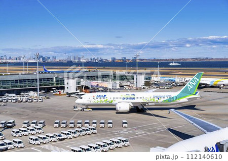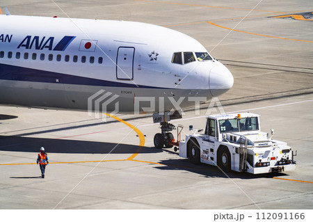 空港の風景 トーイングカーと飛行機 東京都大田区