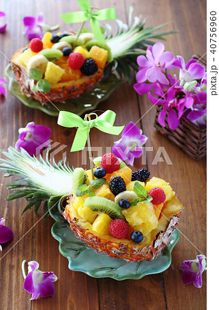 パイナップルボート デザート 明るい背景