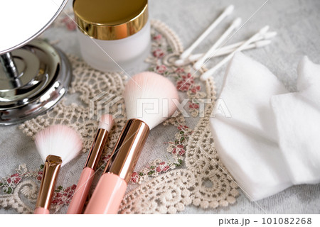鏡とメイクブラシ、綿棒とコットンはメイクアップの必需品