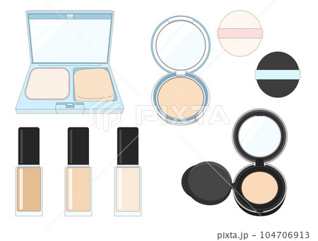 パウダー、リキッド、クッションタイプのファンデーションのセット、ベクター素材