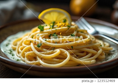 Luxurious Italian Fettuccine in Silky Cream Sauce with Fresh Herbs and Citrus Accents