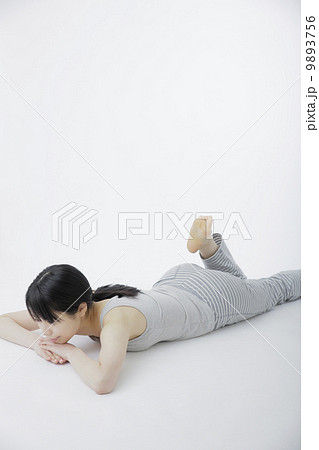エアコンを操作する暑がっている女性(エアコン本体にピント)