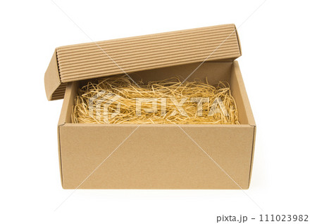 片面ダンボールギフト箱と茶色いペーパーパッキン