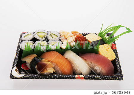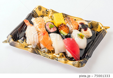 お持ち帰りのお寿司のパック二人前【白背景・切り抜き】