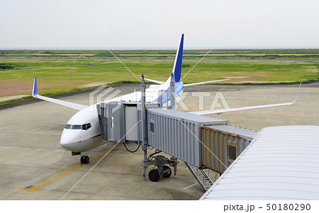 空港 ボーディング・ブリッジ 内部 無人 横位置