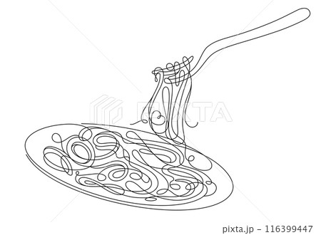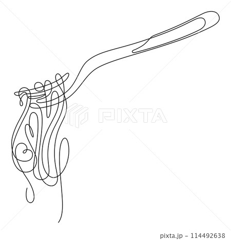 one line drawing of spaghetti rolled with fork close up