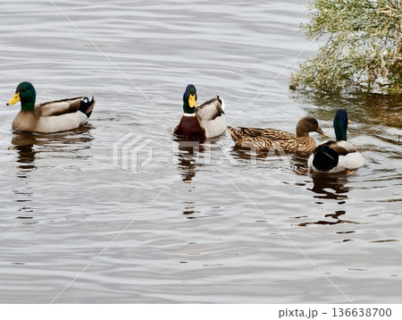 Duck Swim Tranquil, Gentle Ripples Host Peaceful Ducks, Mallard Swans Drift Smoothly Across Calm Waters