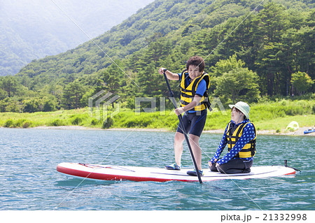 SUPを楽しむ男の子 本栖湖
