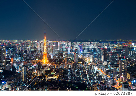 東京都心の街並み夜景 (東京都港区) 2020年2月
