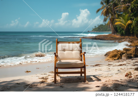 南国ビーチに佇む一脚の椅子 - 癒しと静けさのバカンス風景