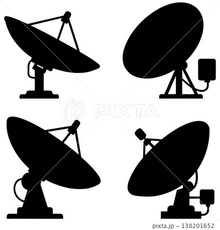 Four satellite dish icons on white background for communication and technology