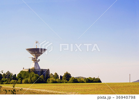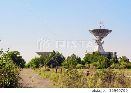 Large satellite dish radar antenna station field