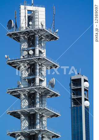 赤と白の鉄塔にあるテレビアンテナ(テレビ送信所)