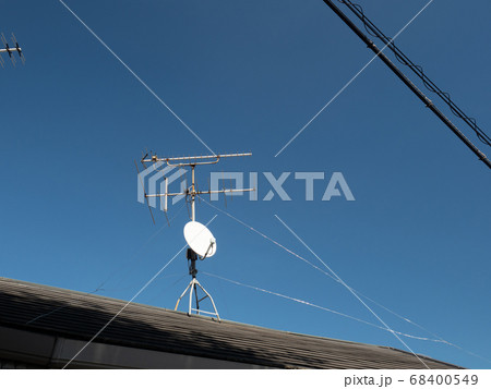 衛星放送受信用のパラボラアンテナと地上波放送受信用の八木宇田アンテナ
