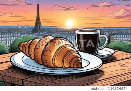 Start your morning in Paris with a classic croissant and coffee, overlooking the Eiffel Tower at sunrise