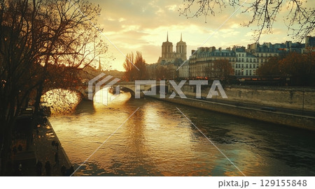 At dawn, the Eiffel Tower stands majestically beside the Seine River, surrounded by soft morning light. The tranquil waters reflect the iconic structure, creating a serene Parisian atmosphere.