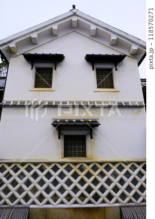 広島県 竹原 顔に見える白壁の蔵のデザインがユニーク