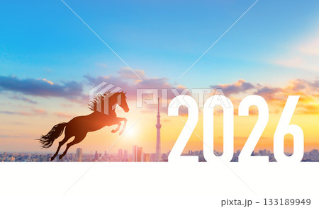 2026年へジャンプする馬 2026年午年新年イメージ ビジネス向け年賀状素材