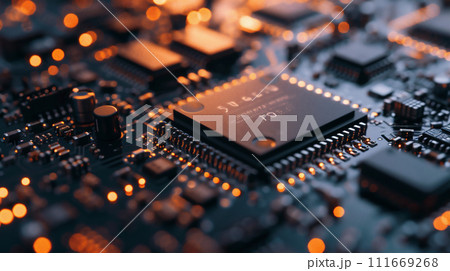 発光する電子基板とネットワークのイメージ(AI生成画像)