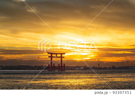 観光タワーに沈みゆく夕日 浜松市弁天島海浜公園