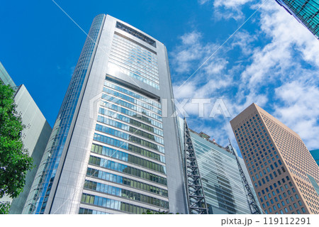 丸の内の高層ビル群とさわさかな青空