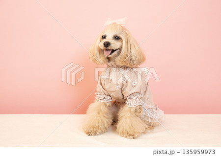 ピンクバックと微笑むマルプーのパンナのバストアップ