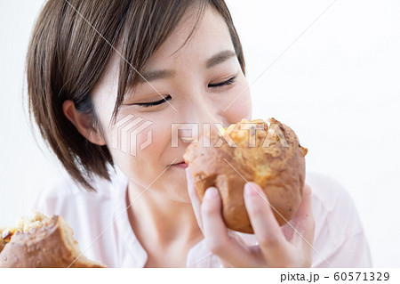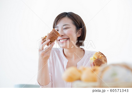パンを食べる女性