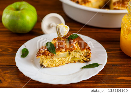 Warm autumn pie with apples is ideal for tea and coffee