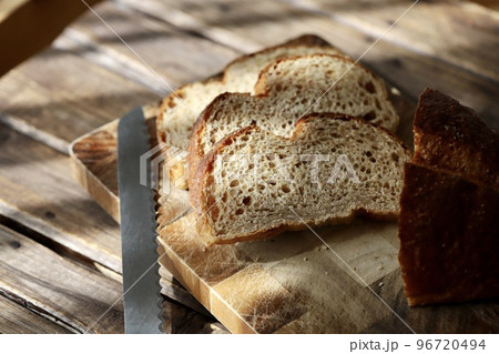 カットした天然酵母のライ麦パン 日本のパン