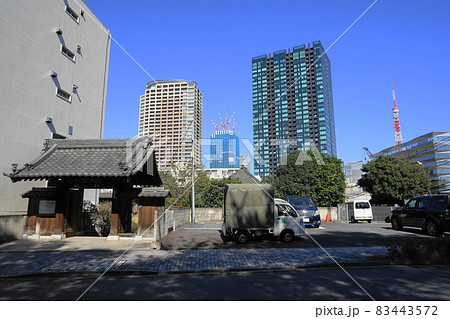 10月 港区1343龍原寺山門とパークコート麻布十番・シティタワー麻布十番・三田一丁目